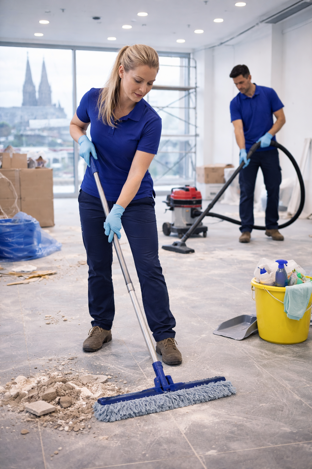 Nach Bau- oder Renovierungsarbeiten hinterlassen Staub, Mörtelreste und Folien oft ein unfertiges Gesamtbild. Unsere Bauendreinigung in Köln sorgt für eine saubere, sichere und bezugsfertige Übergabe – strukturiert in Grob- und Feinreinigung.